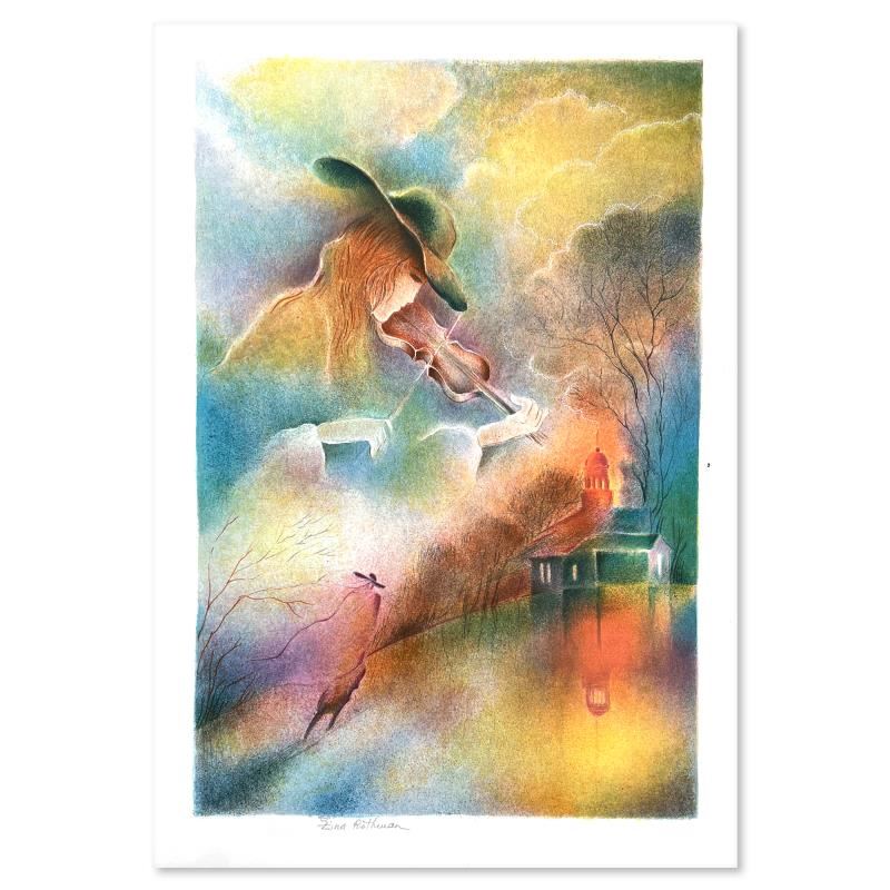 This is a limited edition serigraph on paper by Zina Roitman. The piece comes hand signed by the artist, numbered, and with a letter of authenticity. Measures approximately 18" x 12".