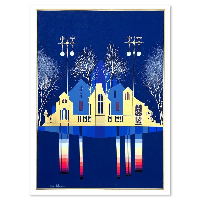 This is a limited edition serigraph on paper by Zina Roitman. The piece comes hand signed by the artist, numbered, and with a letter of authenticity. Measures approximately 27.5" x 20".