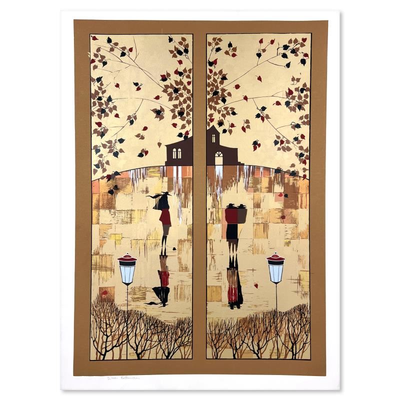This is a limited edition serigraph on paper by Zina Roitman. The piece comes hand signed by the artist, numbered, and with a letter of authenticity. Measures approximately 27" x 19.5".