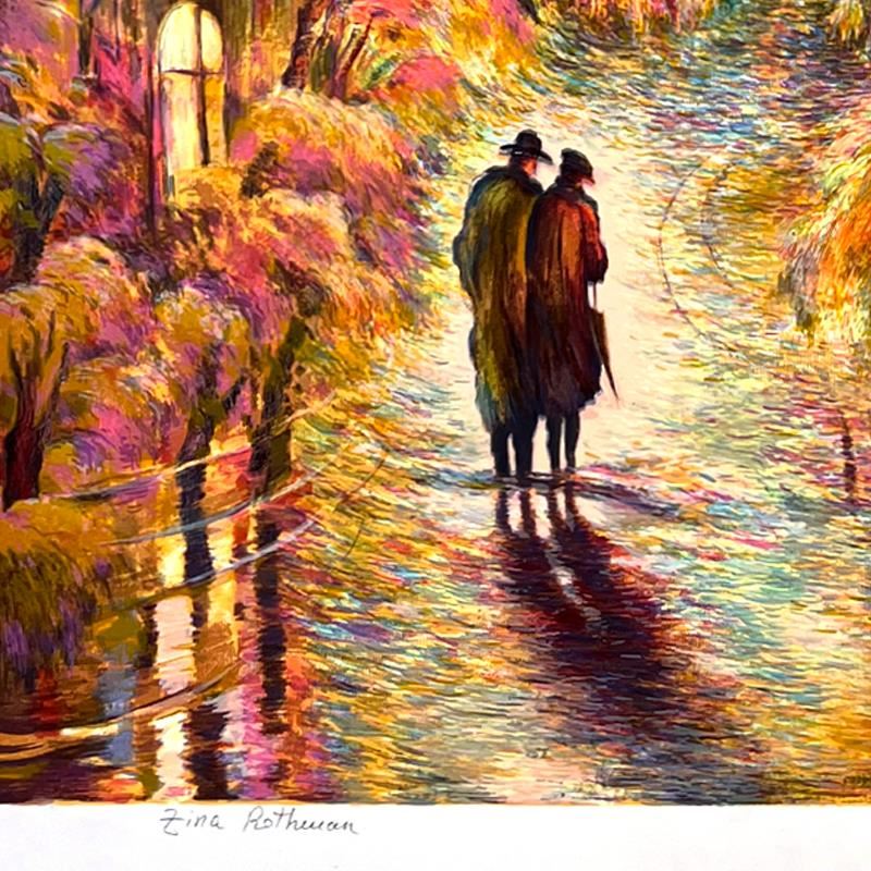 This is a limited edition serigraph on paper by Zina Roitman. The piece comes hand signed by the artist, numbered, and with a letter of authenticity. Measures approximately 21.5" x 17.5".