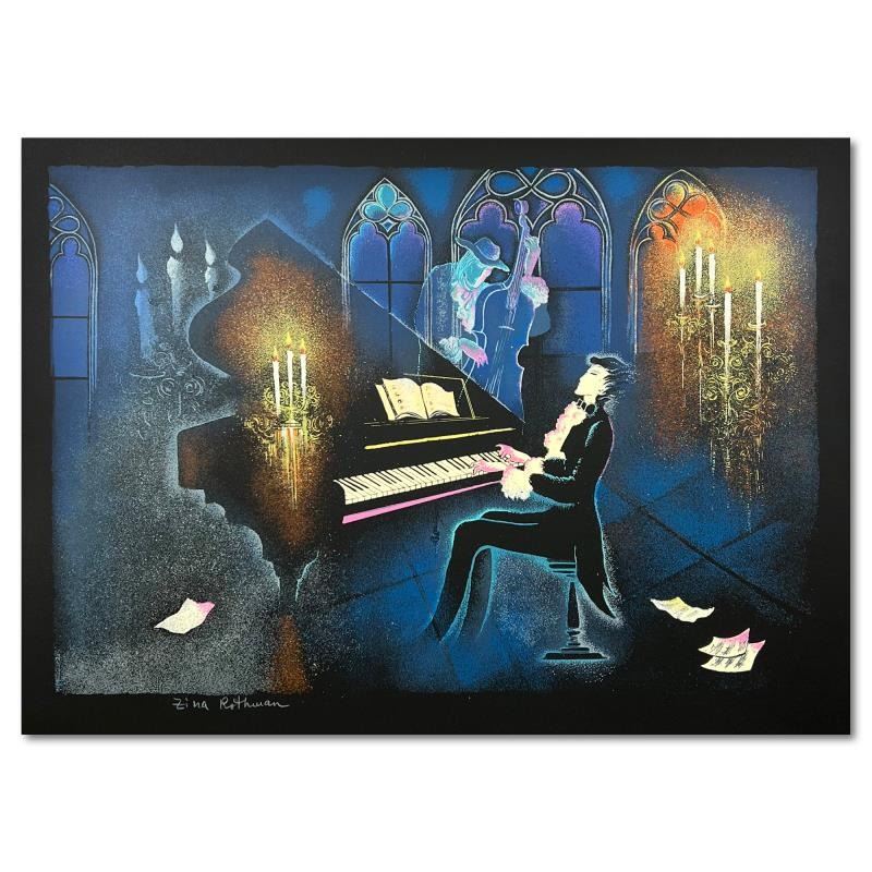 This is a limited edition serigraph on paper by Zina Roitman. The piece comes hand signed by the artist, numbered, and with a letter of authenticity. Measures approximately 13" x 17.5".
