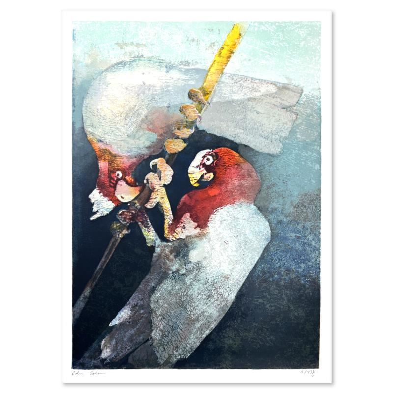 This is a limited edition serigraph on paper by Edwin Salomon (1935-2014). The piece comes hand signed by the artist, numbered, and with a letter of authenticity. Measures approximately 26" x 19".