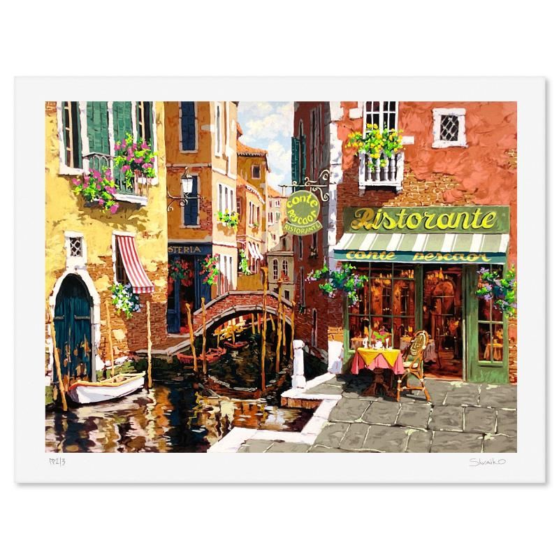 This is a limited edition printer's proof serigraph on paper by Viktor Shvaiko, numbered and hand signed by the artist. Includes Letter of Authenticity. Measures approx. 21" x 27.5" (border), 18" x 24" (image).