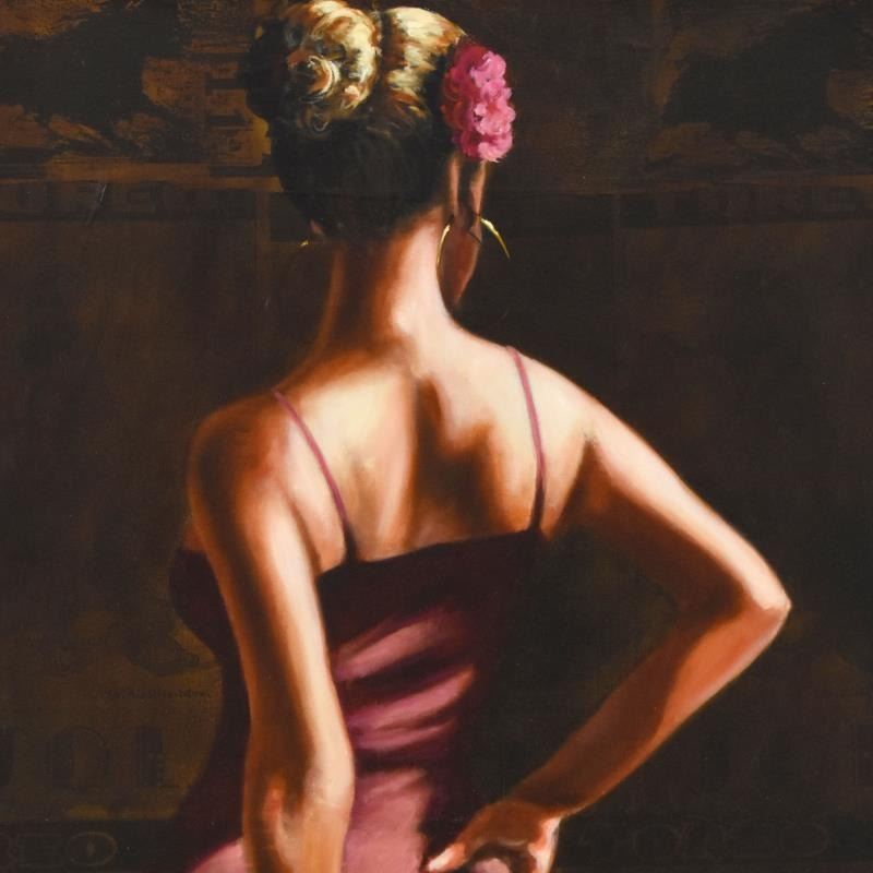 This is an original painting on gallery wrapped canvas by David Silva, hand signed using the nom de plume, Pierre. The artist uses a technique in which he fuses a base layer of paper on top of the canvas before applying oil paint. Includes Letter of Authenticity. Measures approx. 24" x 36" (image). ** Please note: there is wear wear on the corners and edges of the canvas. **