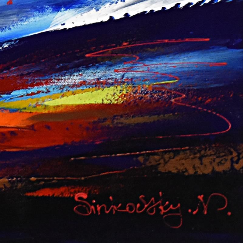 This is an original acrylic painting on canvas by Natalia Sinkovsky, hand signed by the artist. Includes Letter of Authenticity. This piece comes framed. Measures approx. 24.5" x 25" (frame), 20" x 15.5" (image).