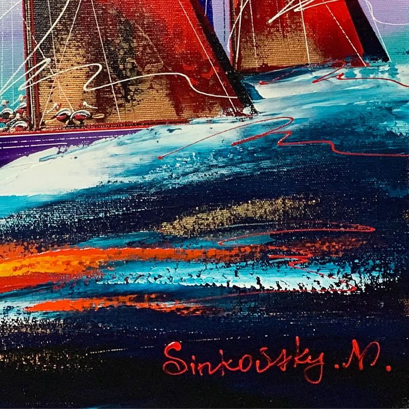 This is an original acrylic painting on canvas by Natalia Sinkovsky, hand signed by the artist. Includes Letter of Authenticity. Measures approximately 20" x 24" (image).