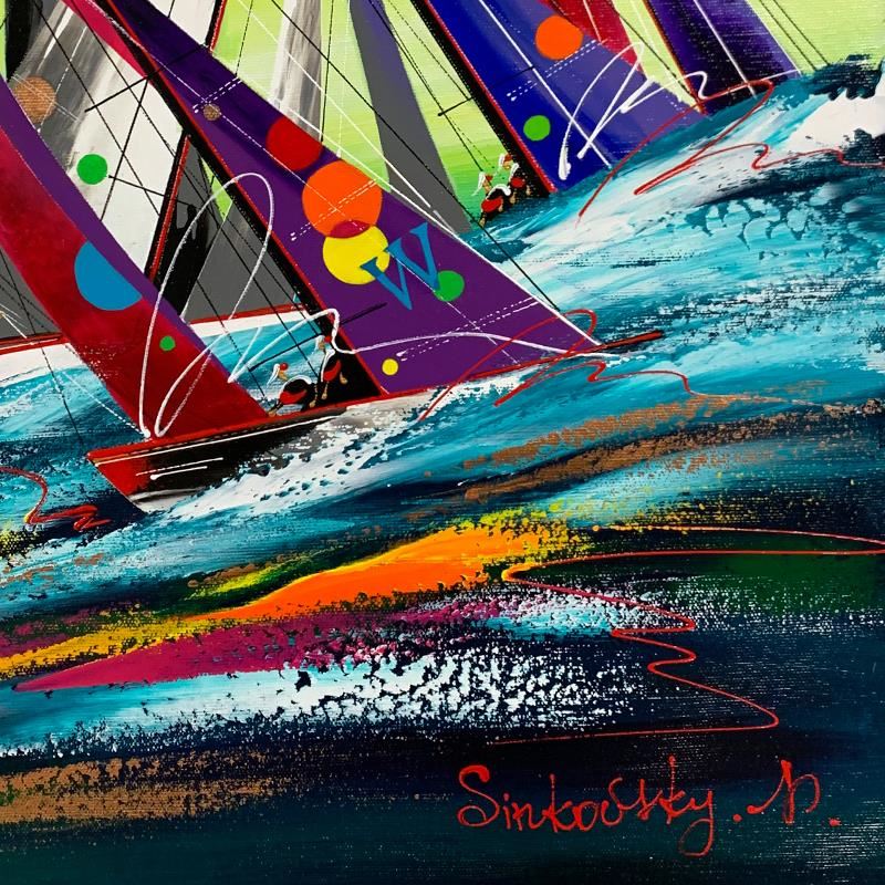 Untitled by Sinkovsky Original. Please see photos and description for all available information. This is a custom framed original acrylic painting on canvas by Natalia Sinkovsky. Hand signed by the artist, the piece includes letter of authenticity. Measures approximately 33" x 33" (framed), 28" x 28" (image). This item requires special handling and may have a longer than usual turnaround.