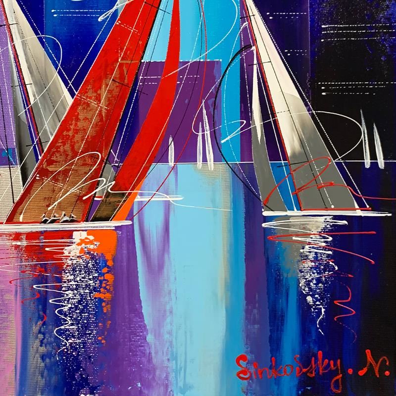 This is a custom framed original acrylic painting on canvas by Natalia Sinkovsky. Hand signed by the artist, the piece includes letter of authenticity. Measures approximately 21" x 21" (framed), 16" x 16" (image). This item requires special handling and m