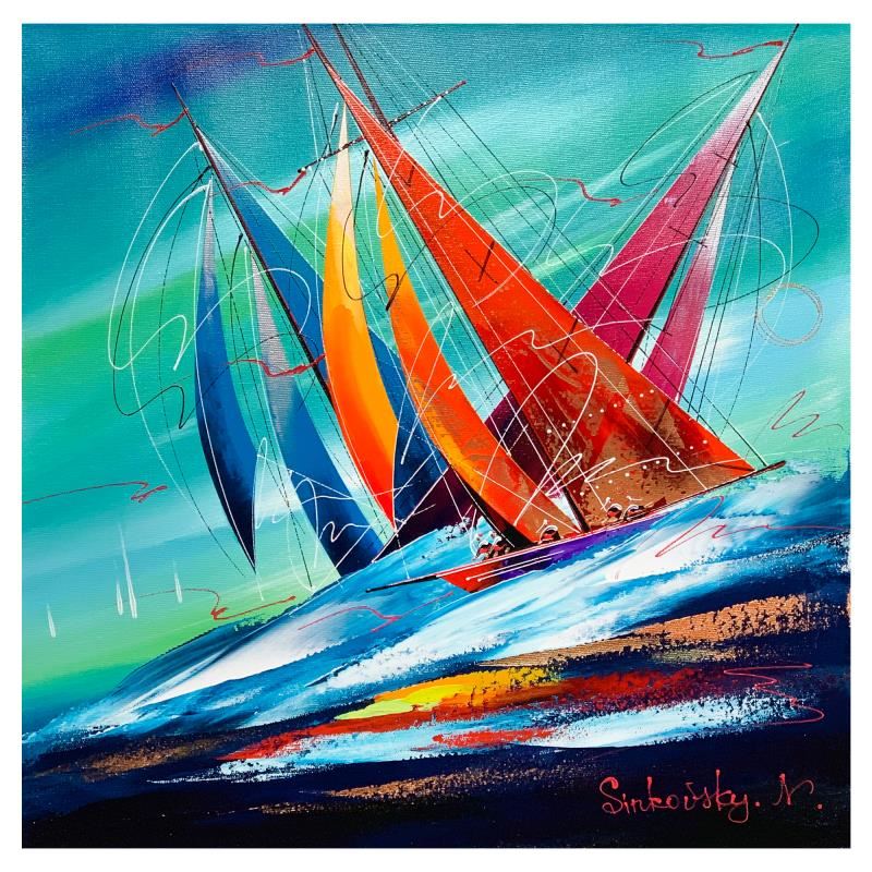 This is an original acrylic painting on canvas by Natalia Sinkovsky, hand signed by the artist. Includes Letter of Authenticity. Measures approximately 20" x 20" (image).
