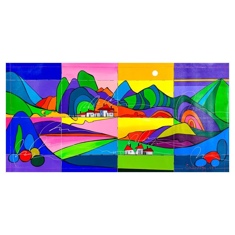 This is an original acrylic painting on canvas by Natalia Sinkovsky, hand signed by the artist. Includes Letter of Authenticity. Measures approx. 24" x 48" (image).
