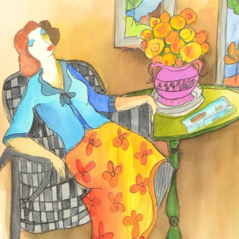 This is an original mixed media watercolor on paper by Itzchak Tarkay (1935-2012), hand signed by the artist. Includes Letter of Authenticity. Measures approx. 12" x 16" (image).