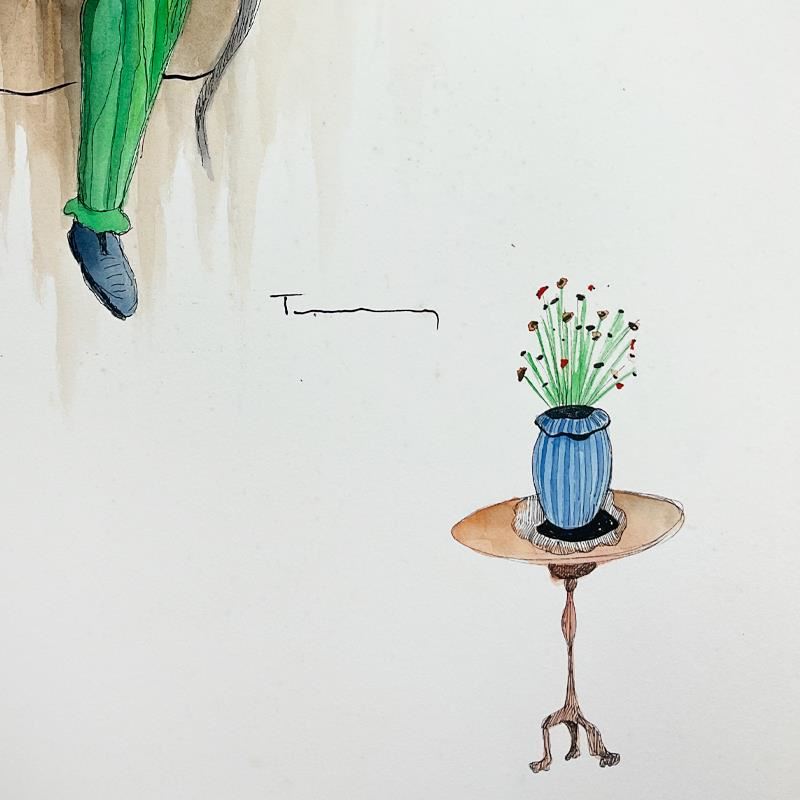 This is an original watercolor painting on paper by Itzchak Tarkay (1935-2012), hand signed by the artist. Includes Letter of Authenticity. Measures approx. 24" x 30" (image). There is very light and sparse spotting in the white part of the paper.