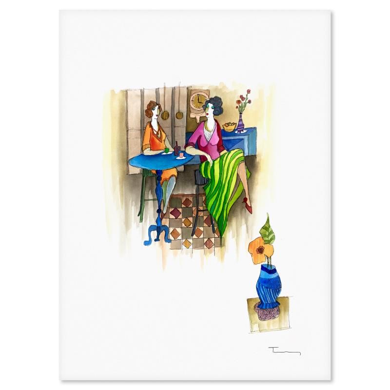 This is an original mixed media watercolor on paper by Itzchak Tarkay (1935-2012), hand signed by the artist. Includes Letter of Authenticity. Measures approx. 30" x 22" (image).