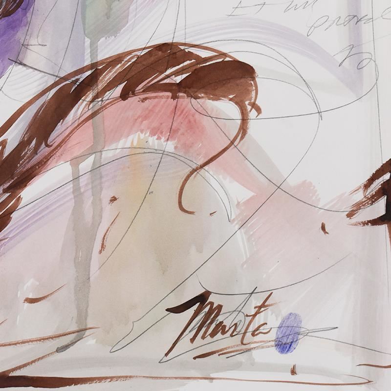 This is an original mixed media painting on paper, hand signed and thumb printed by Marta Wiley. This piece comes custom framed. Includes Letter of Authenticity. Measures approx. 30.5" x 24.5" (frame); 23" x 17" (image). Due to the medium, the paper may be slightly wavy, particularly around the edges.