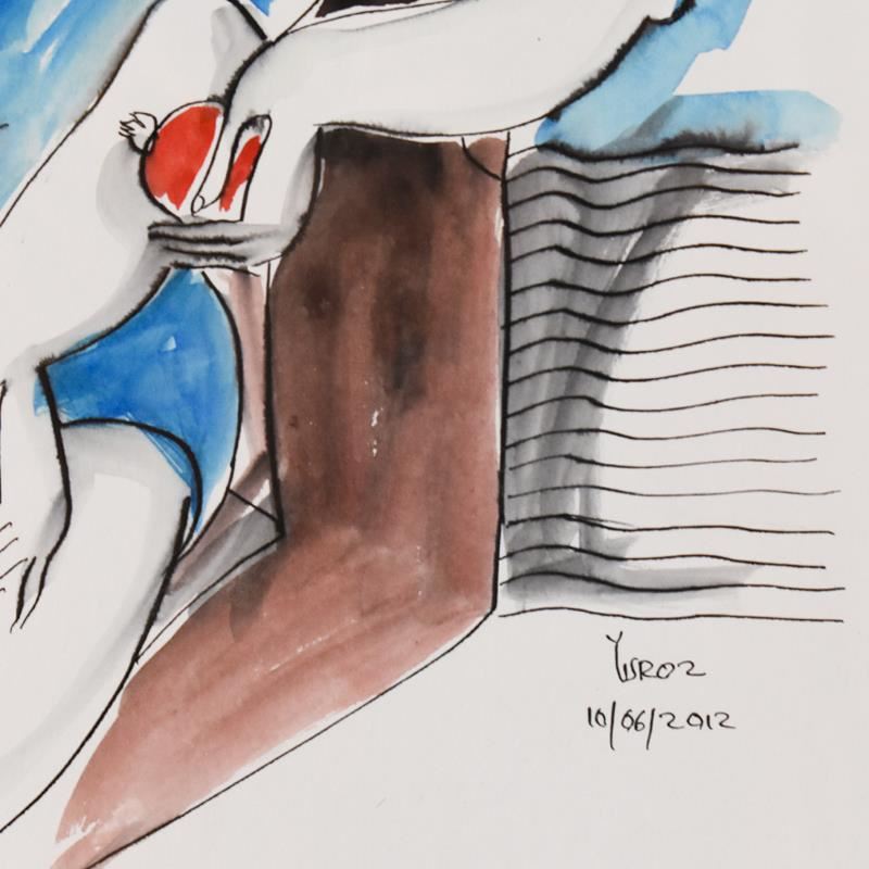 This is an original mixed media watercolor painting on paper by Yuroz, hand signed by the artist. This piece comes custom framed. Includes Letter of Authenticity. Measures approx. 24.5" x 27.5" (frame), 9" x 12" (image).
