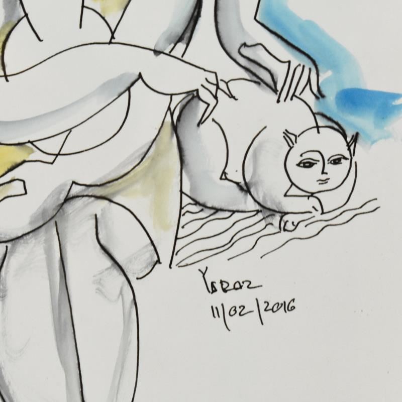 This is an original mixed media watercolor painting on paper by Yuroz, hand signed by the artist. This piece comes custom framed. Includes Letter of Authenticity. Measures approx. 24" x 27" (frame), 9" x 12" (image).