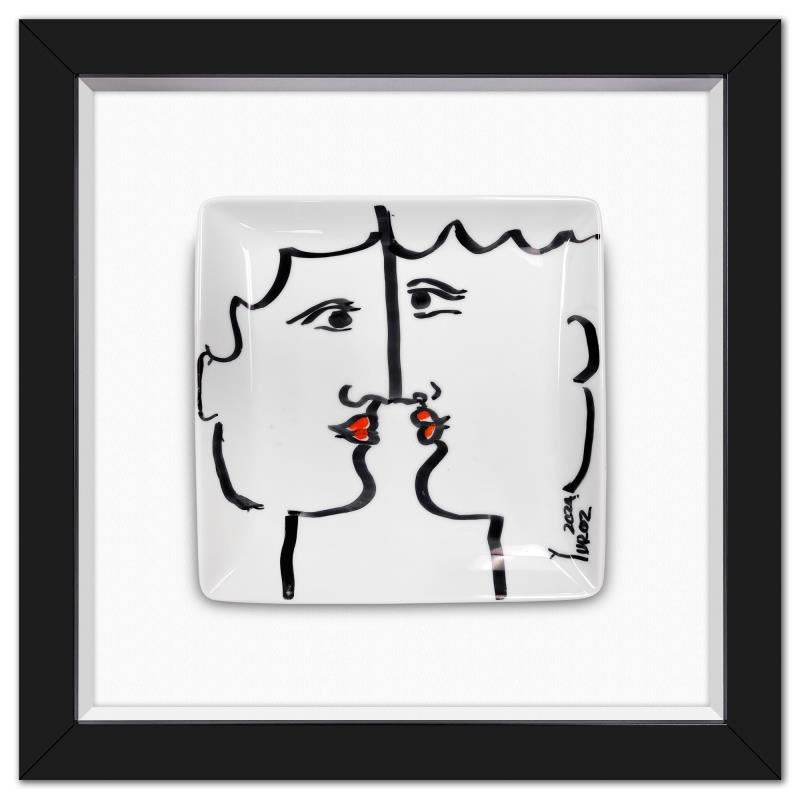 This is a hand painted ceramic plate by Yuroz, hand signed by the artist. This piece comes custom framed floated on linen. Includes Letter of Authenticity. Measures approx. 13.5" x 13.5" (frame), 7.5" (diameter). This item requires special handling and may have a longer than usual turnaround.