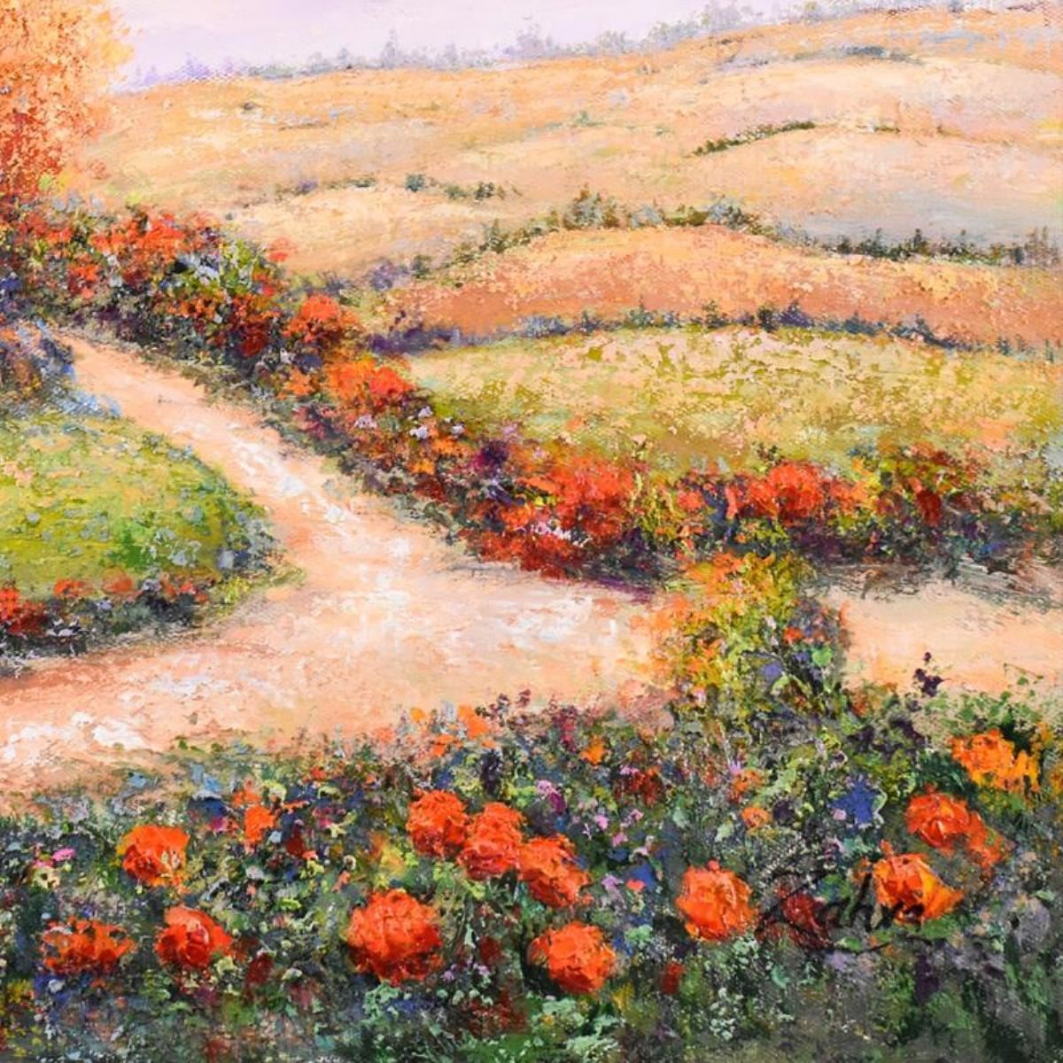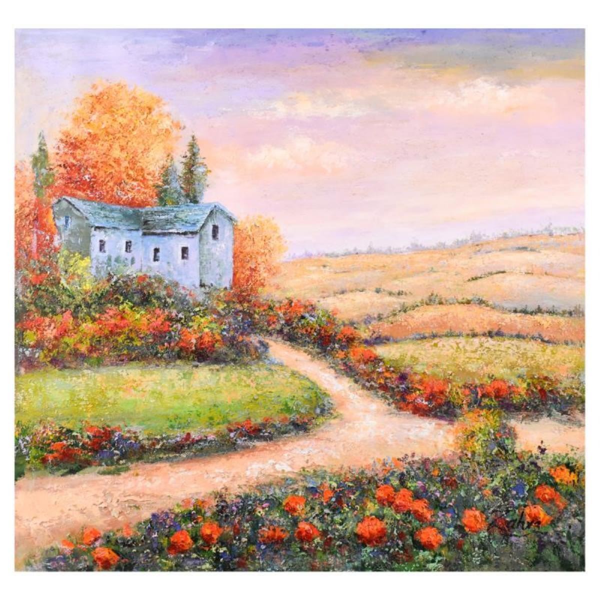 This is an original oil painting on canvas by Zahra, hand signed by the artist. Includes Letter of Authenticity. Measures approx. 46" x 46" (image).