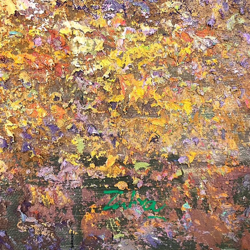 This is an original acrylic painting on canvas by Zahra, hand signed by the artist. Includes Letter of Authenticity. Measures approx. 38" x 61" (image).