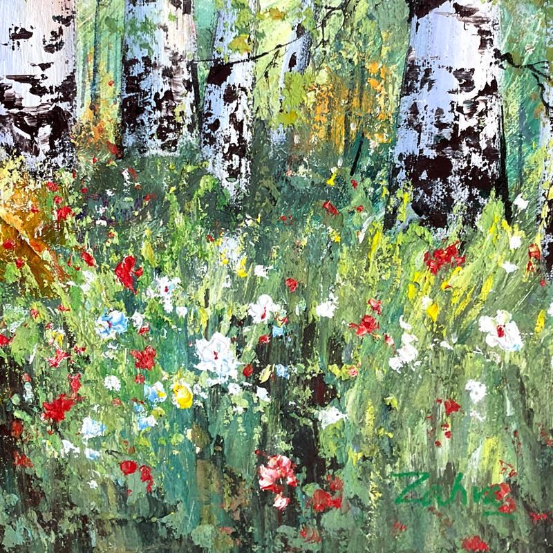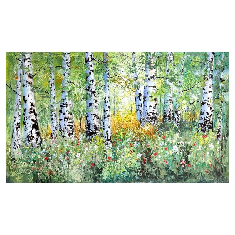 This is an original acrylic painting on canvas by Zahra, hand signed by the artist. Includes Letter of Authenticity. Measures approx. 30" x 50" (image).
