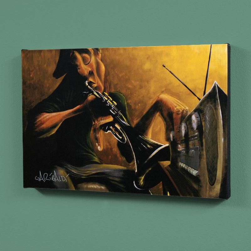 Combining his passions for music and art, David Garibaldi creates visual poetry. "Urban Tunes" is a limited edition giclee on stretched canvas, AP numbered and bearing the artist's authorized signature. This piece comes gallery wrapped. Includes Certificate of Authenticity! Measures approx. 36" x 24" (image).