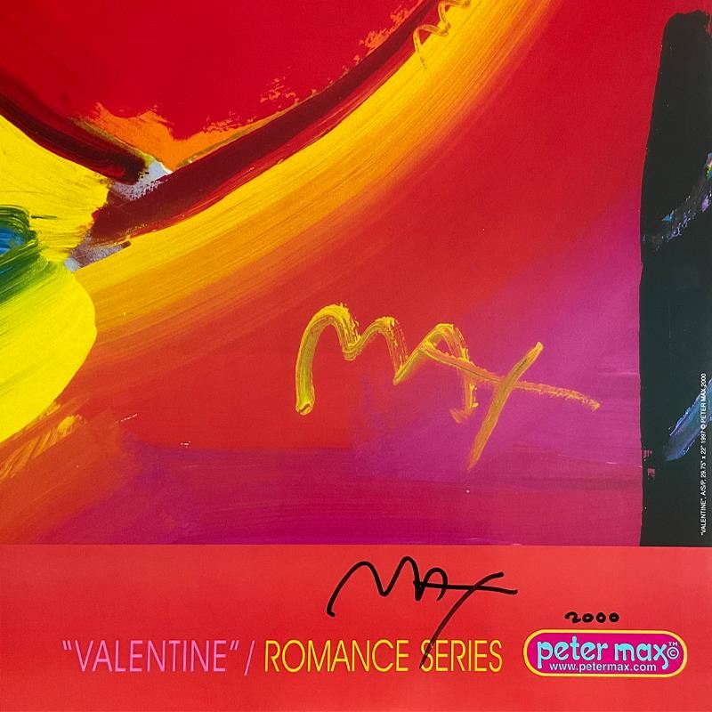"Valentine" is a poster on paper by Peter Max, hand signed by the artist. Includes Letter of Authenticity. Measures approx. 36" x 24" (image).