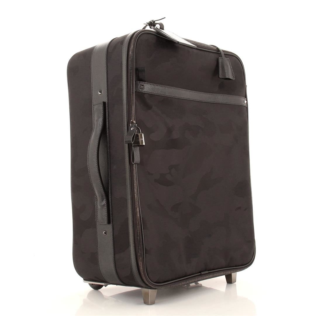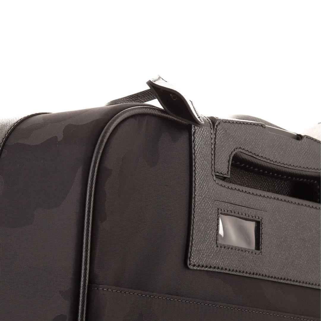 Valentino Black Camo Nylon Carry On Rolling Luggage Condition Details: Moderate scuff on exterior, light wear in interior, scratches on hardware. MMeasurements: Height 19", Width 13.5", Depth 7.4", Strap Drop 19.5"