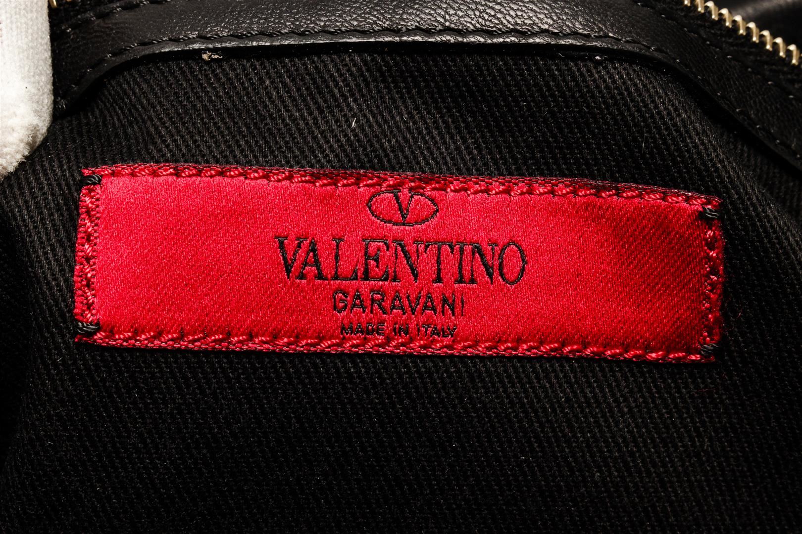 One Valentino Black Leather Bow Convertible Handbag. Item is sold AS-IS. All available information is listed in the description and shown in the photo. Valentino Black Leather Bow Convertible Handbag with gold-tone hardware, gold-tone metal bag foot, exterior rockstuds accents , exterior gold-tone valentino embossed logo, two bows at both sides black interior lining, three compartments with one compartment zipped, one interior zipper pocket, and dual rolled leather top handles. Height: 10 in (25.4 cm), Width: 4 in (10.16 cm), Depth: 12.5 in (31.75 cm)