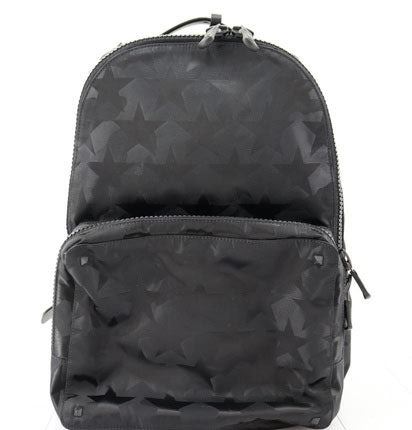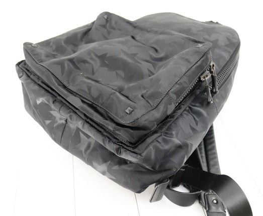 One Valentino Black Nylon Camustars Backpack. Item is sold AS-IS. Please check photos and descriptions for all available details. Valentino Camustars Backpack features black printed nylon with featuring zip fastening, gunmetal hardware, a front zipped pocket, leather adjustable shoulder straps and leather top handle. 13" x 16.1" x 8.3"