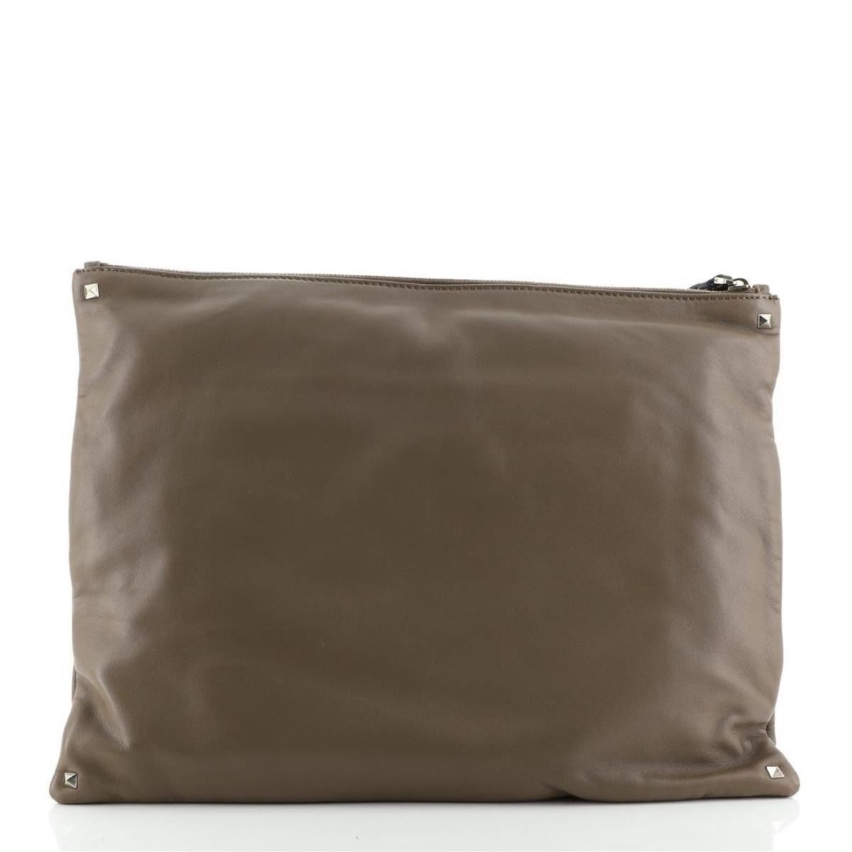 Valentino Rockstud Wristlet Clutch Leather Oversized Brown Condition Details: Creasing, scuffs and indentations on exterior, wear on opening corners. Minor wear in interior, discoloration on interior opening edges, scratches on hardware. 5 Height