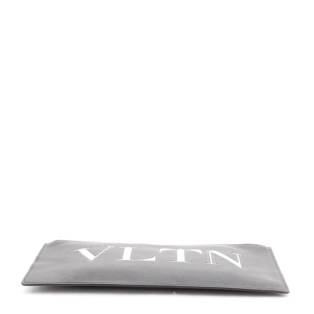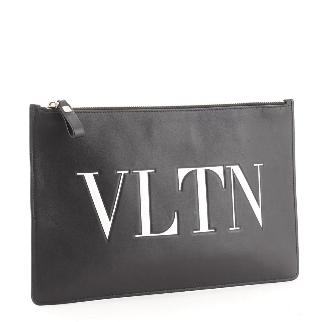 One Valentino VLTN Zip Clutch Printed Leather Black. Item is sold AS-IS. All available information is listed in the description and shown in the photo. Valentino VLTN Zip Clutch Printed Leather Black Printed Leather Condition Details: Moderate scuffs and wear on exterior, minor wear in interior, scratches on hardware. Height 8", Width 12", Depth 0.5", Strap Drop None