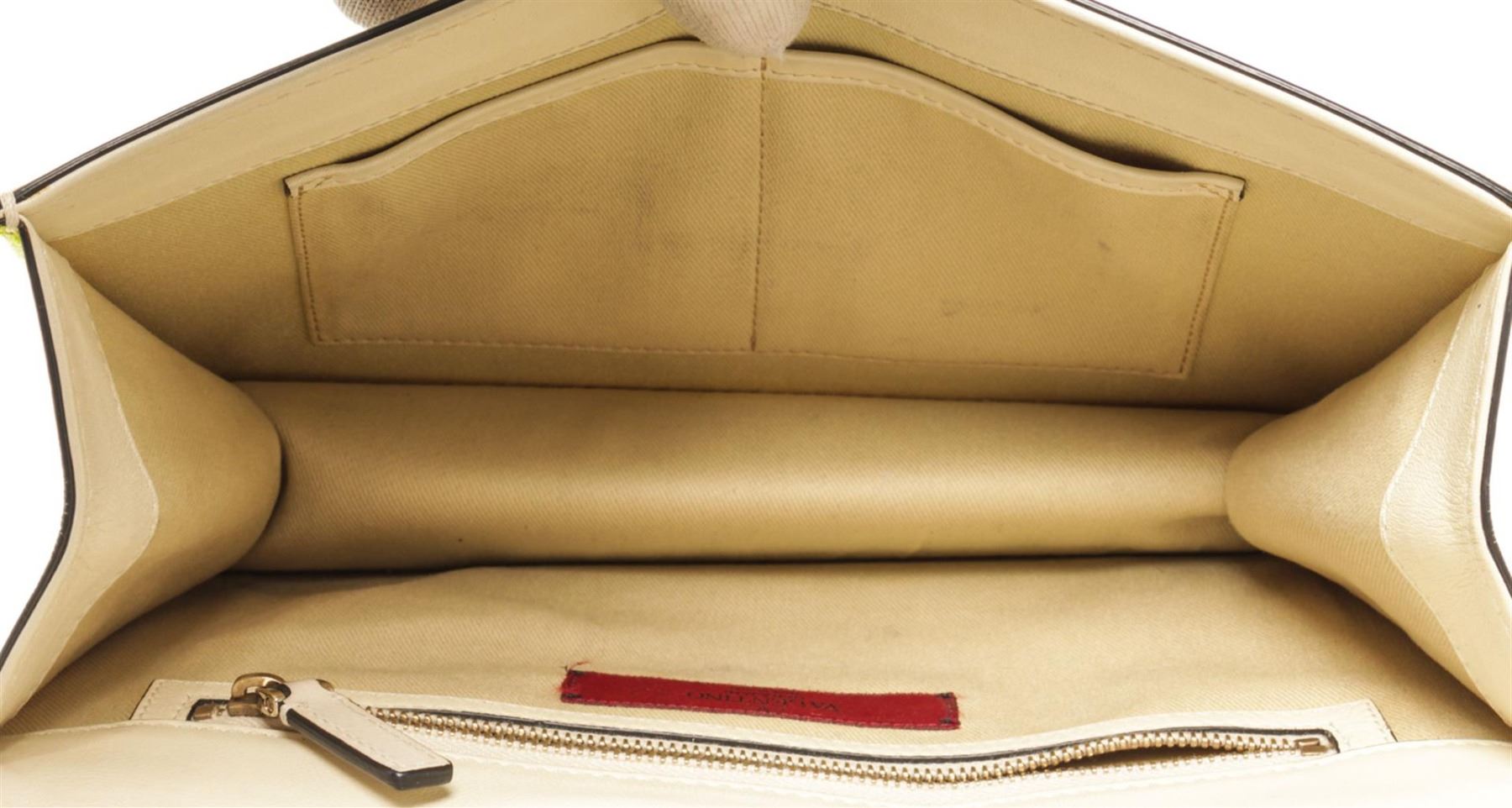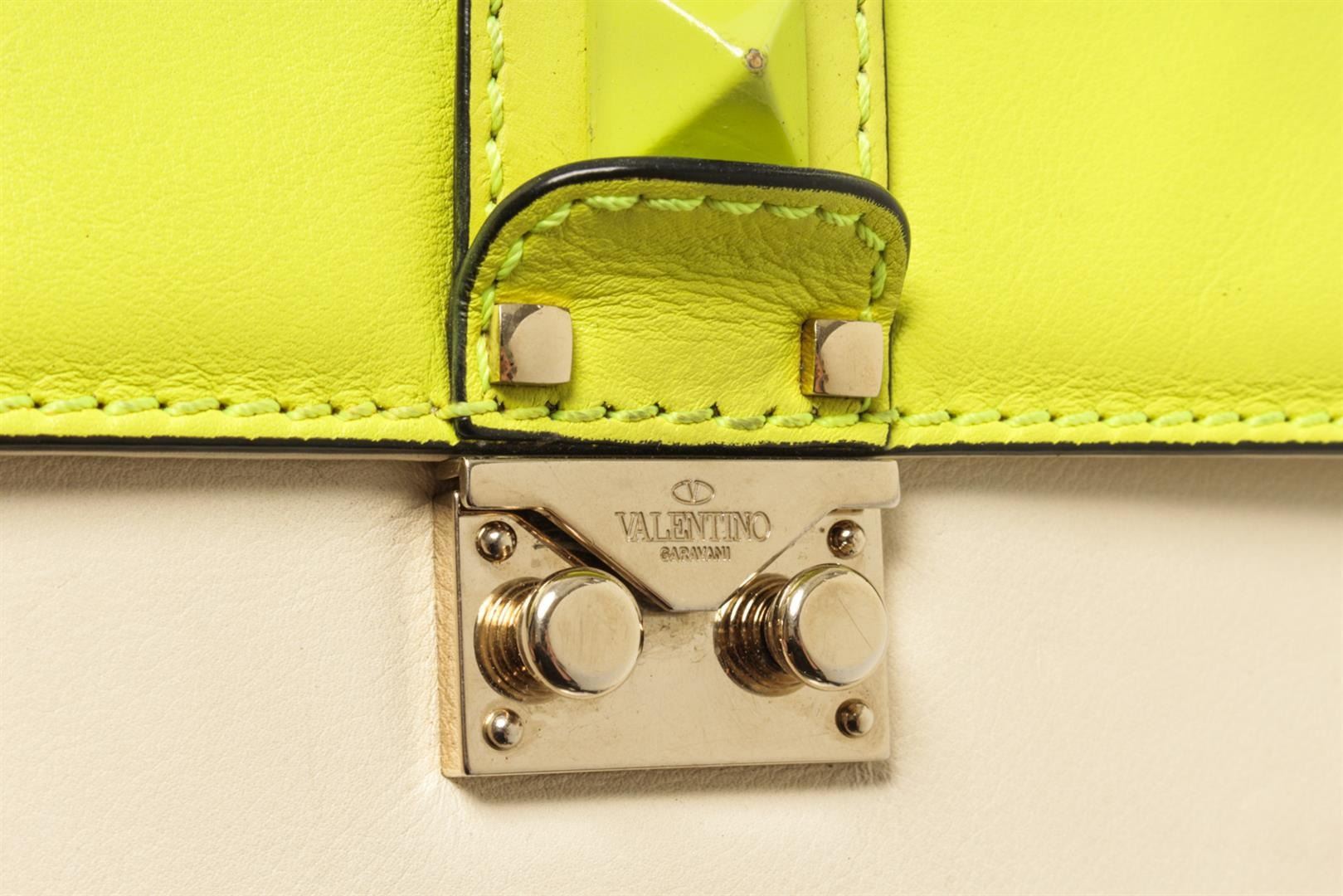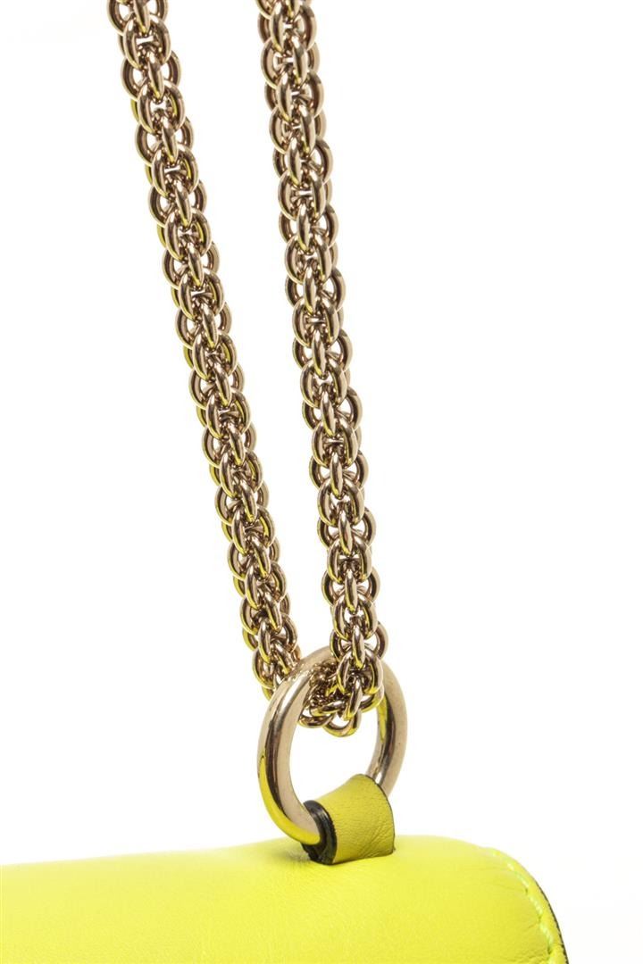 One Valentino Yellow Green Leather Glam Lock Shoulder Bag. Item is sold AS-IS. All available information is listed in the description and shown in the photo. Valentino Yellow Green Leather Glam Lock Shoulder Bag with silver tone hardware, chain shoulder strap, two interior pockets, canvas lining and snap closure.