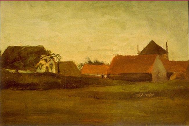 Artist: Vincent Van Gogh - Title: Farmerhouses - Medium: Fine Art Reproduction Giclee on Archival Canvas - Image Size: Approximately 13.25 inches x 20 inches - Unframed on Unstretched Canvas - Biography: Vincent van Gogh (born March 30, 1853, Zundert, Neth.--died July 29, 1890, Auvers-sur-Oise, near Paris, France), - Van Gogh was a Dutch painter, generally considered the greatest after Rembrandt, and one of the greatest of the Post-Impressionists. The striking color, emphatic brushwork, and contoured forms of his work powerfully influenced the current of Expressionism in modern art. Van Gogh's art became astoundingly popular after his death, especially in the late 20th century, when his work sold for record-breaking sums at auctions around the world and was featured in blockbuster touring exhibitions. In part because of his extensive published letters, van Gogh has also been mythologized in the popular imagination as the quintessential tortured artist.