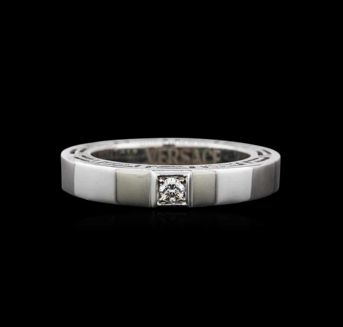 One Versace ring featuring: 18KT white gold weighing 6.26 grams containing one diamond with a total weight of 0.12ct.