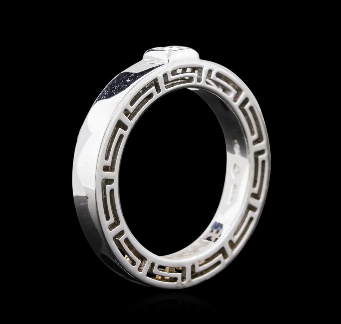 One Versace ring featuring: 18KT white gold weighing 6.26 grams containing one diamond with a total weight of 0.12ct.
