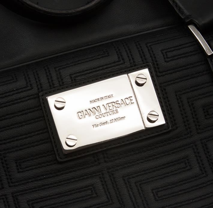 One Versace bag featuring: black quilted leather, distinguished by classic couture motif and makes all your travels exclusive.