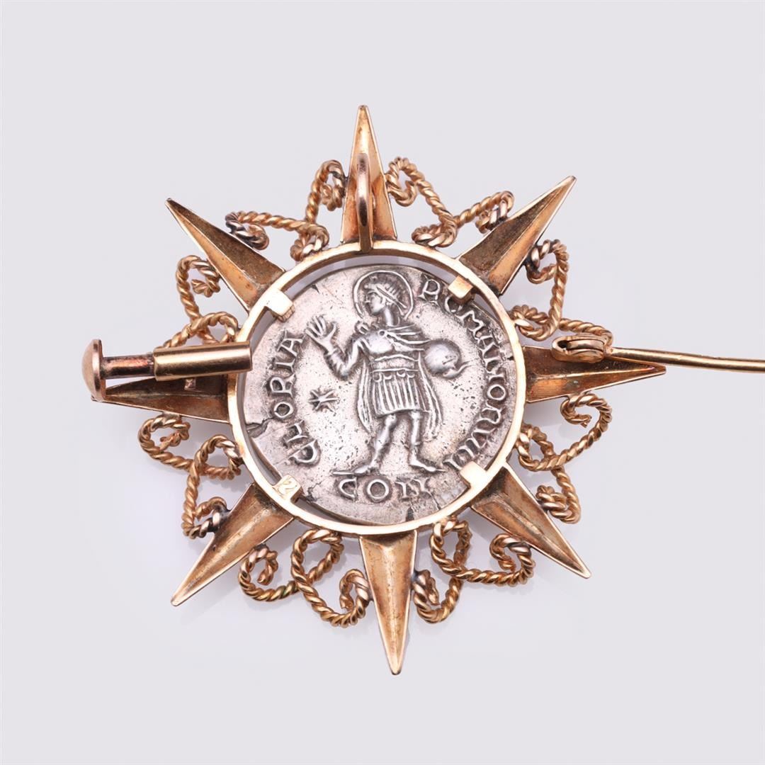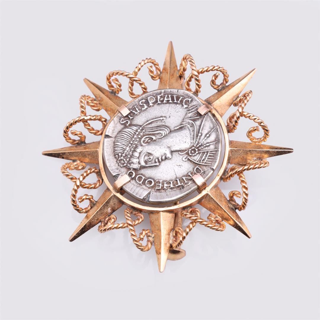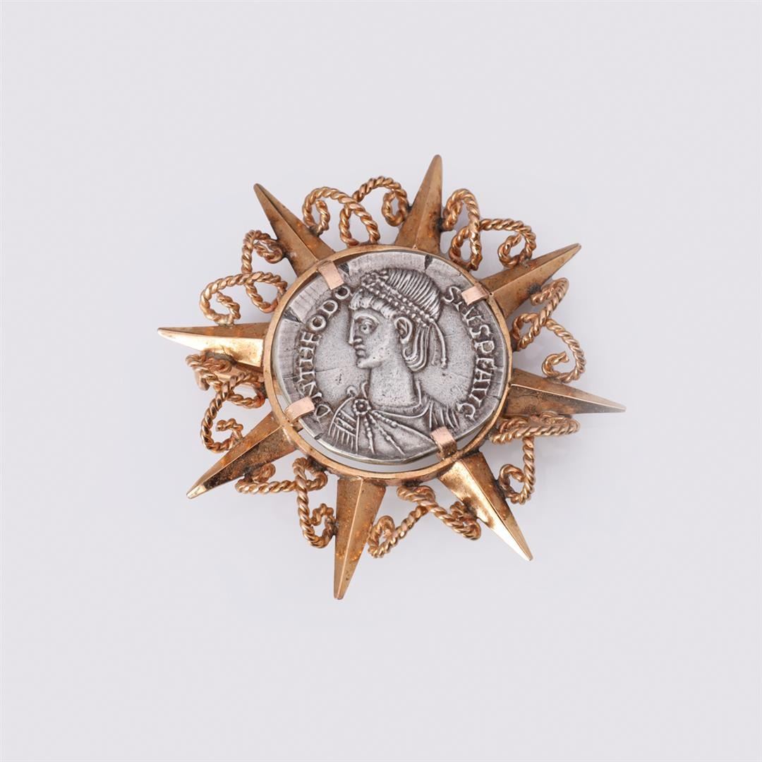 Victorian Rose Gold Pendant/Brooch Mounted With Silver Byzantine Coin
