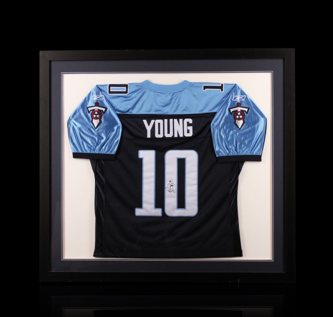 Vince Young Framed Autographed Jersey. Comes with Certificate of Authenticity.