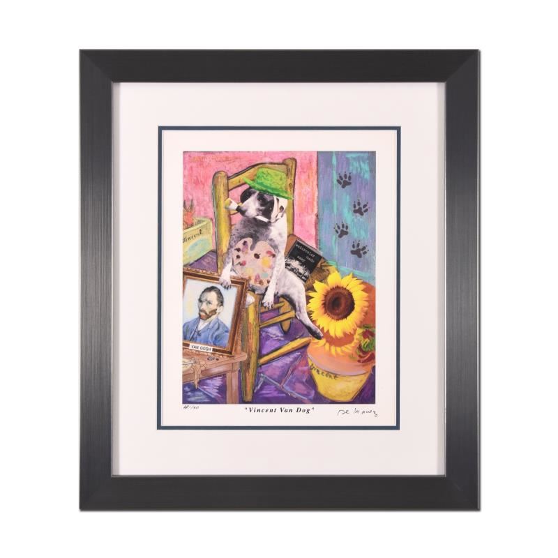 "Vincent Van Dog" is a limited edition artist proof on paper by Nelson De La Nuez, numbered and hand signed by the artist. This piece comes custom framed. Includes Letter of Authenticity. Measures approx. 20.5" x 23.5" (frame), 10" x 13" (image).