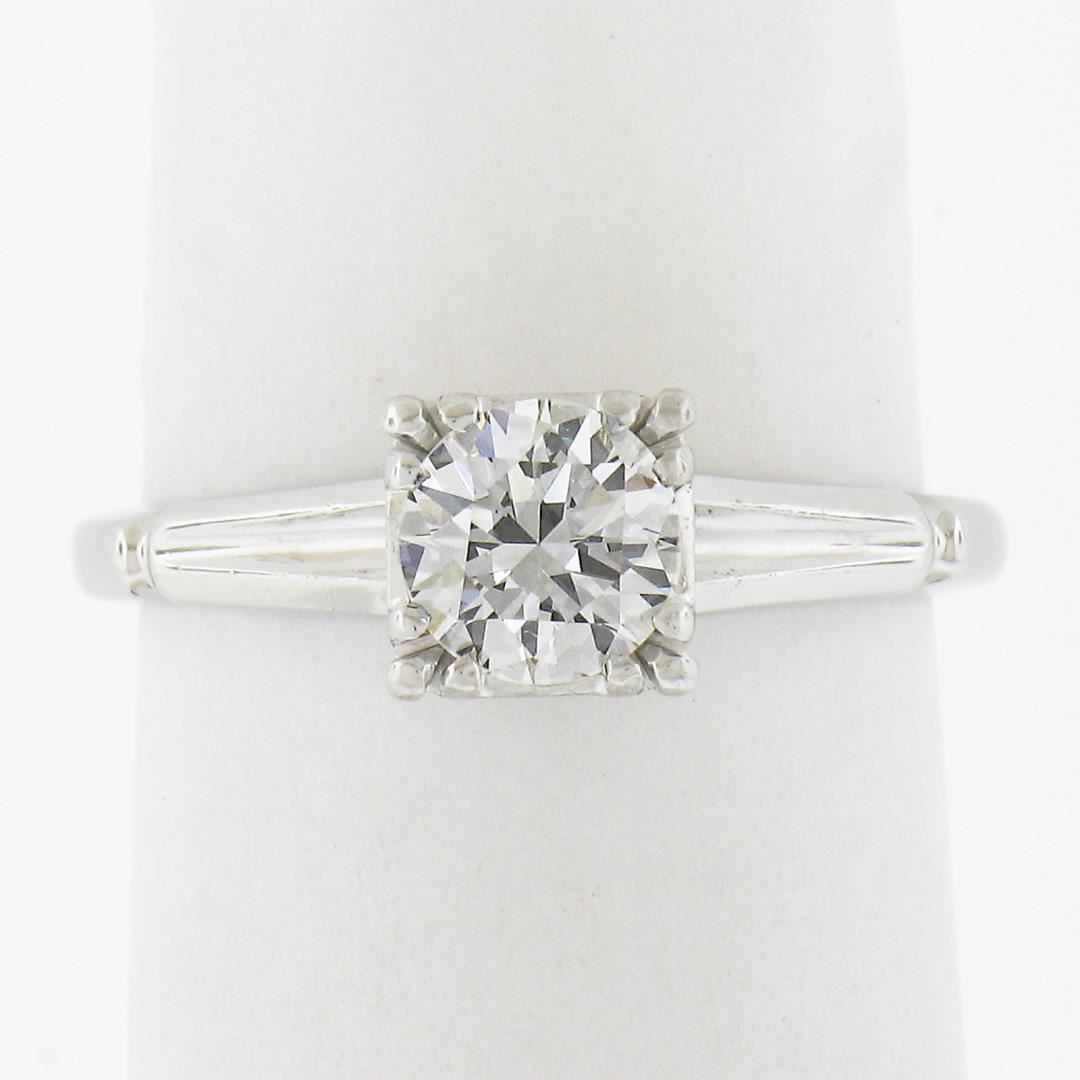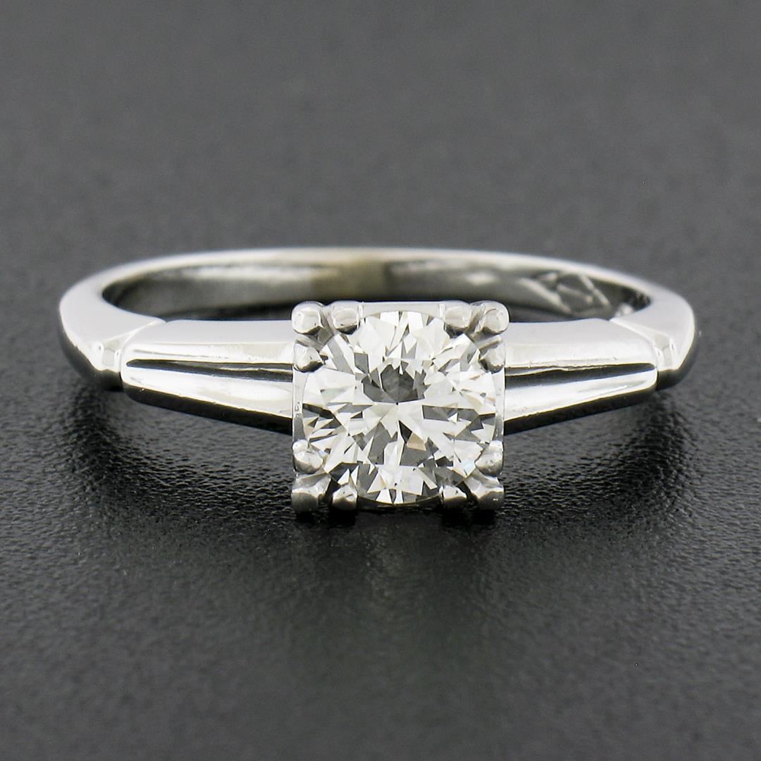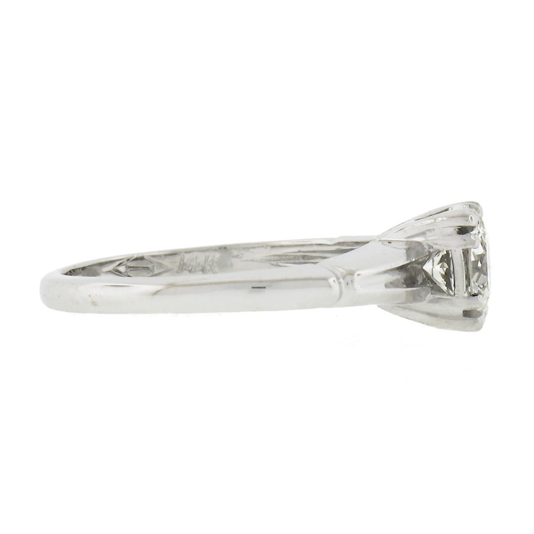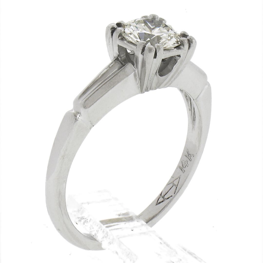 A vintage solid 14k white gold engagement ring, with 1 round cut natural diamond (G - VS1 ; 0.66ct ). The ring is size 5.0, weighs a total of 2.66 grams, and measures 6mm wide.