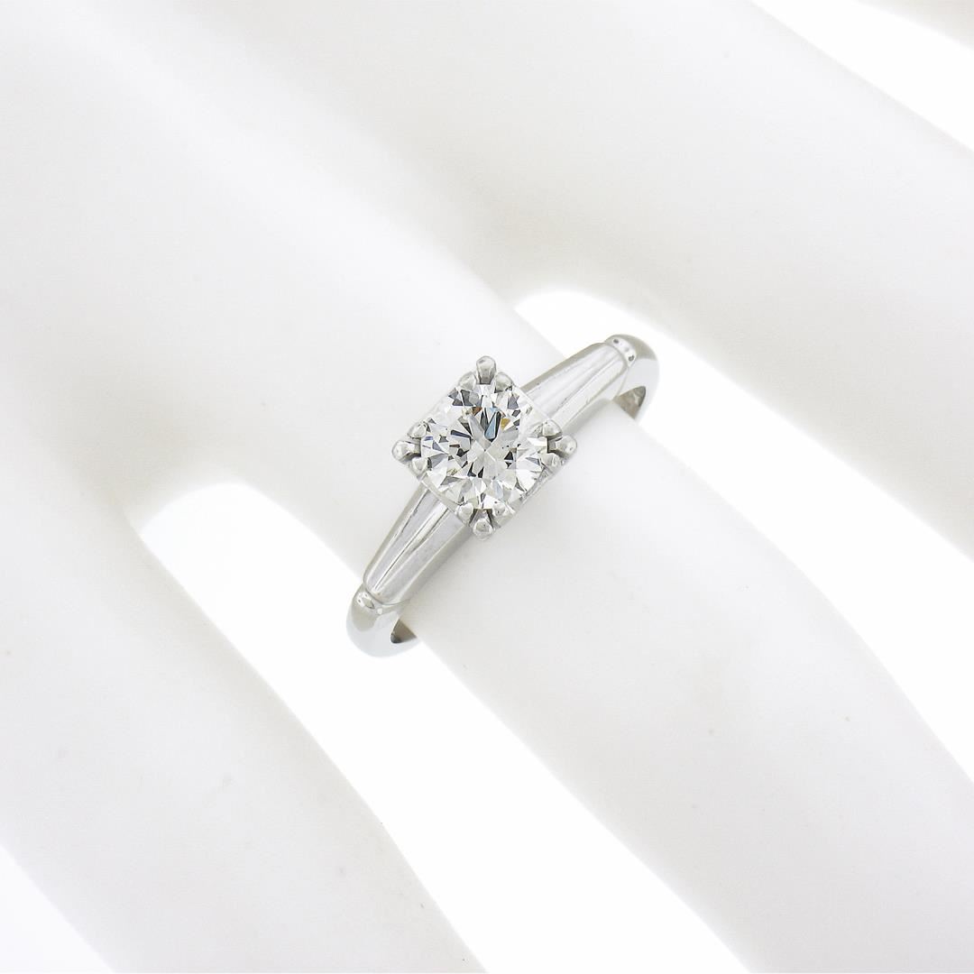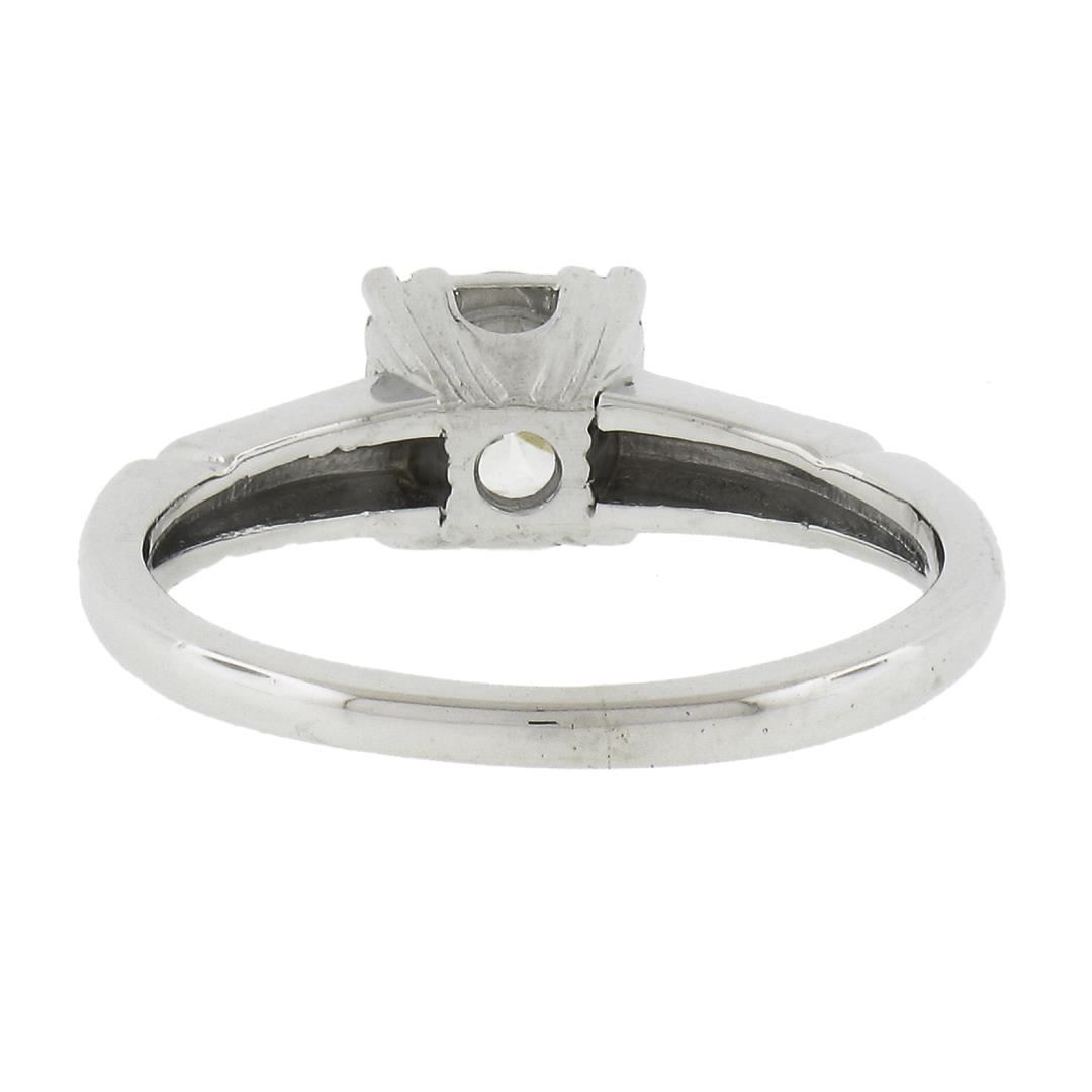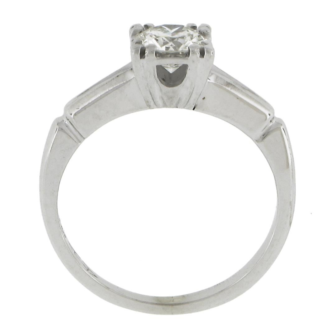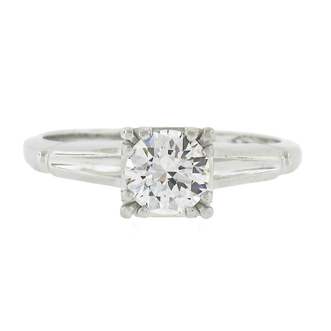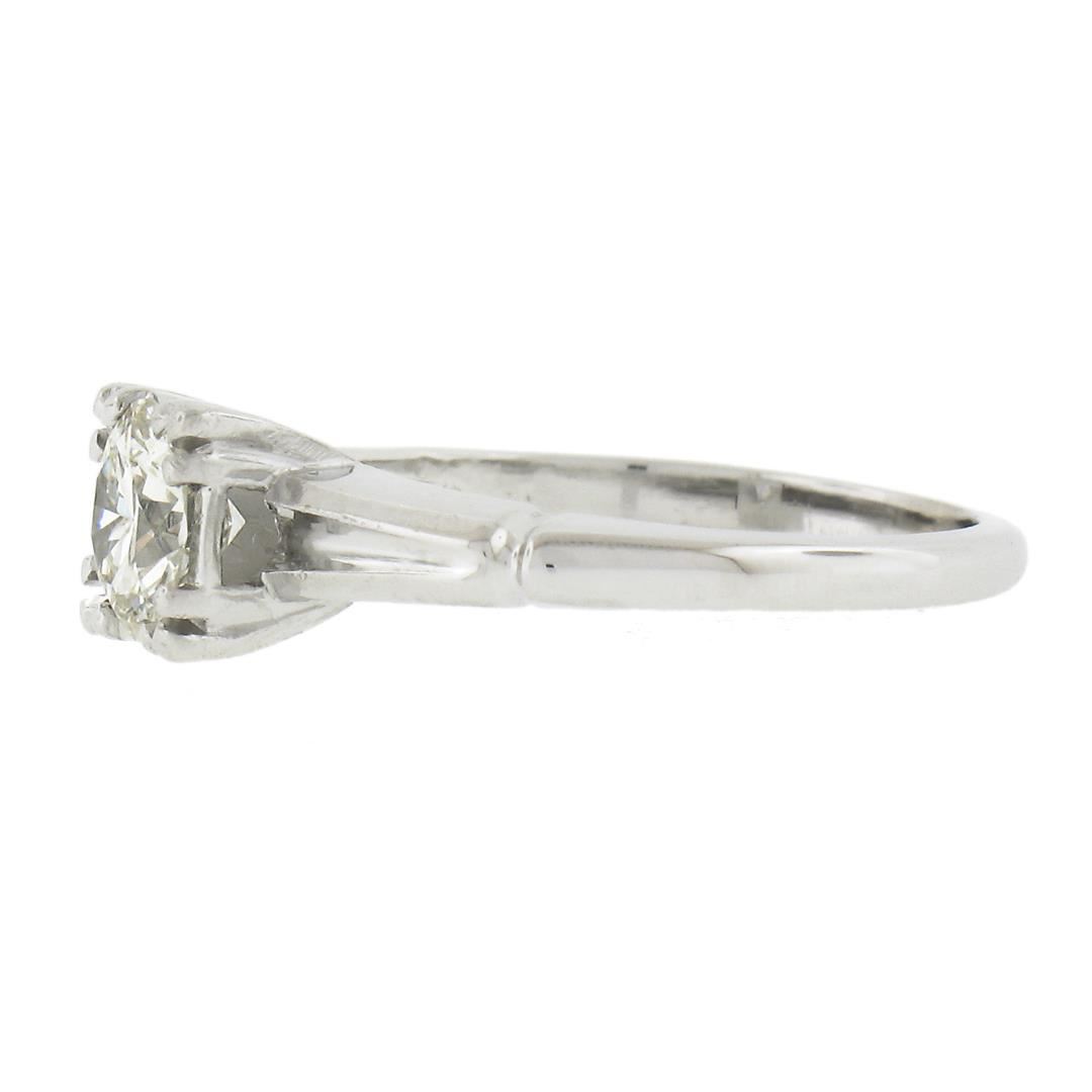 A vintage solid 14k white gold engagement ring, with 1 round cut natural diamond (G - VS1 ; 0.66ct ). The ring is size 5.0, weighs a total of 2.66 grams, and measures 6mm wide.