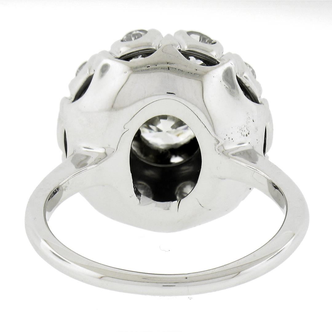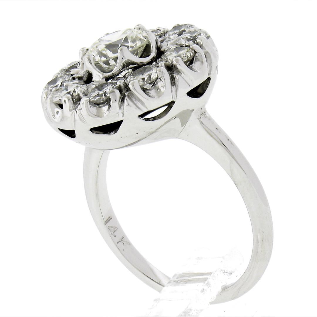 A vintage solid 14k white gold cluster ring, with 1 GIA graded round cut natural diamond (L - VS2 ; 0.85ct), surrounded with a halo of 10 round cut natural diamonds (G-I - SI1-I1 ; 0.90ctw). The ring is size 6.0, weighs a total of 5.62 grams, and measures 15.8mm wide. Comes with all original relevant certifications.
