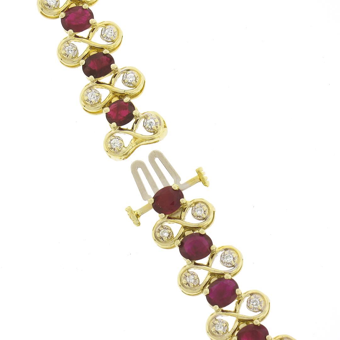 A vintage solid 14k yellow gold necklace, with GIA graded 51 oval cut natural rubies (20.0ctw), and 102 round cut natural diamonds (H/I - SI2/I1 ; 1.00ctw). It weighs a total of 40.80 grams, measures 10.8mm wide, and measures 16.5 inches in length. Comes with all original relevant certifications.