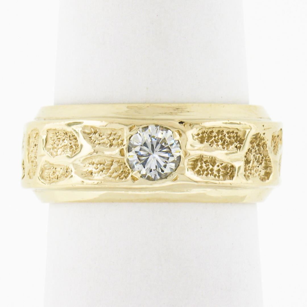A vintage solid 14k yellow gold band ring, with 1 round cut natural diamond (J - SI1 ; 0.28ct). The ring is size 6.0, weighs a total of 6.23 grams, and measures 7.7mm wide.