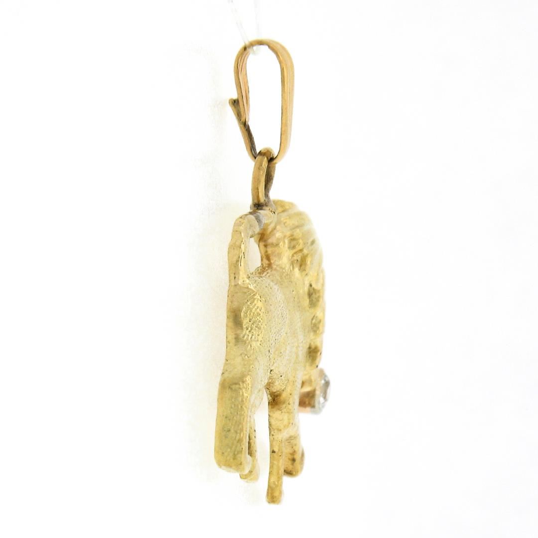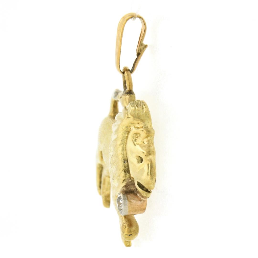 A vintage 14k yellow gold lion charm pendant, with 1 old european cut natural diamond (G - SI1 ; 0.05ct). The pendant weighs a total of 4.0 grams, measures 25.60x24.4mm including the bail, and the inside of the bail measures 5.6x2.2mm.