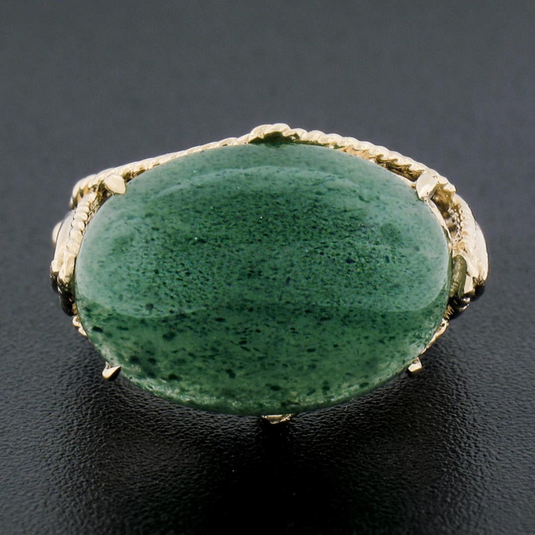 Vintage 14K Gold Oval Cabochon Cut Green Stone Twisted Wire Open Work Band Ring