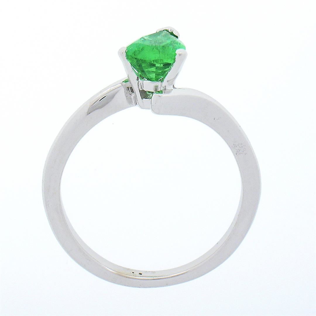 A vintage solid 14k white gold solitaire bypass ring, with 1 pear cut natural emerald (0.71ctw). The ring is size 4.5, weighs a total of 2.08 grams, and measures 7.90mm wide.