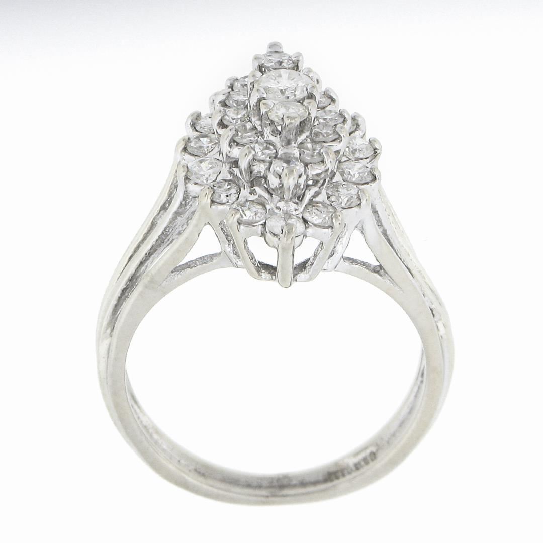 A vintage solid 14k white gold ring, with 29 single & round brilliant cut natural diamonds (F/G - SI1/SI2 ; 1.35ct). The ring is size 6.5, weighs a total of 4.42 grams, and measures 17.60mm wide.