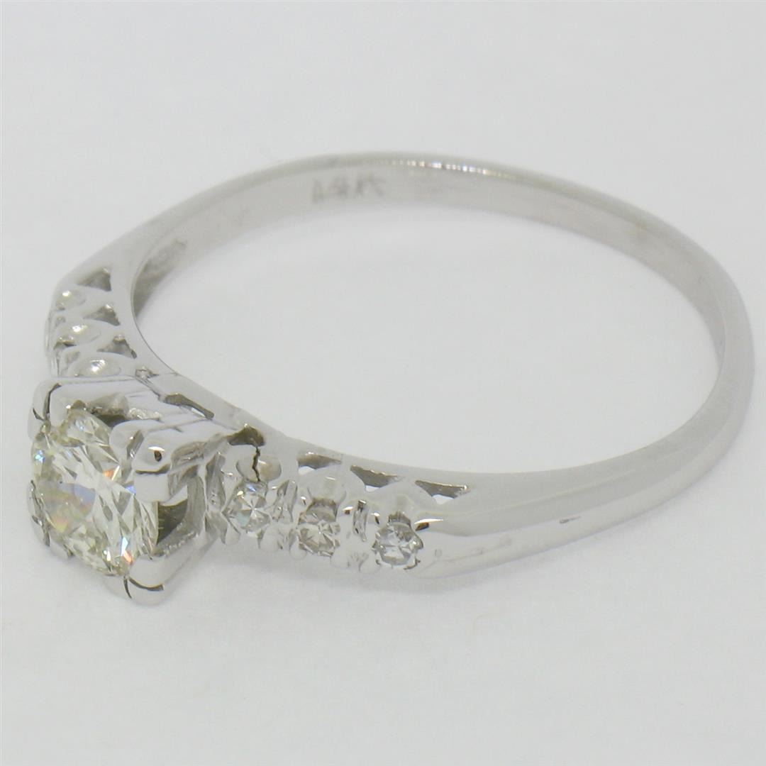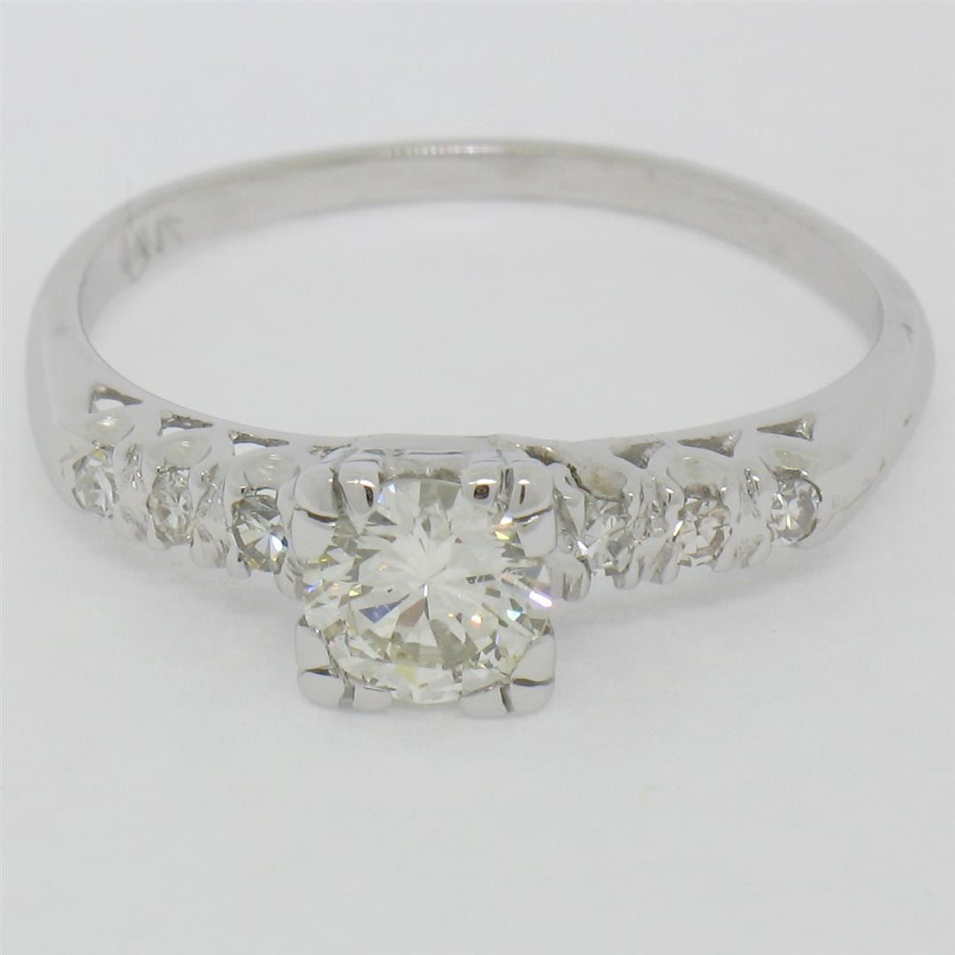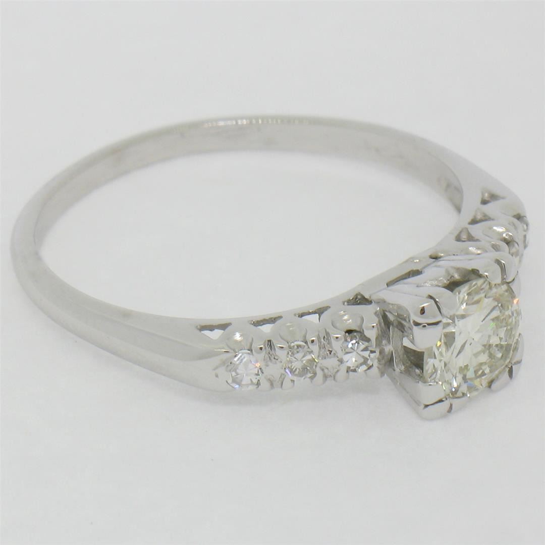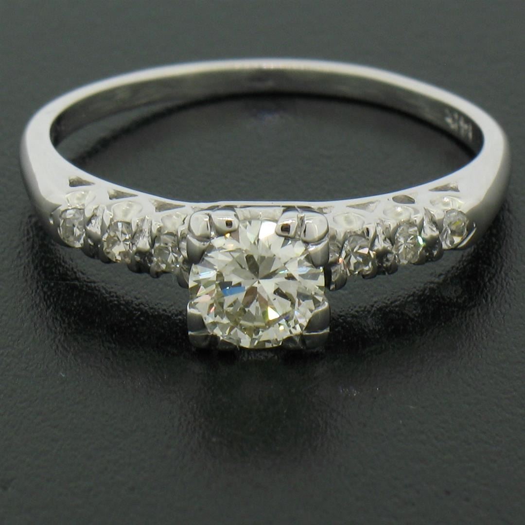 Vintage 14K White Gold .70 ctw Transitional Cut Diamond Solitaire Engagement Rin