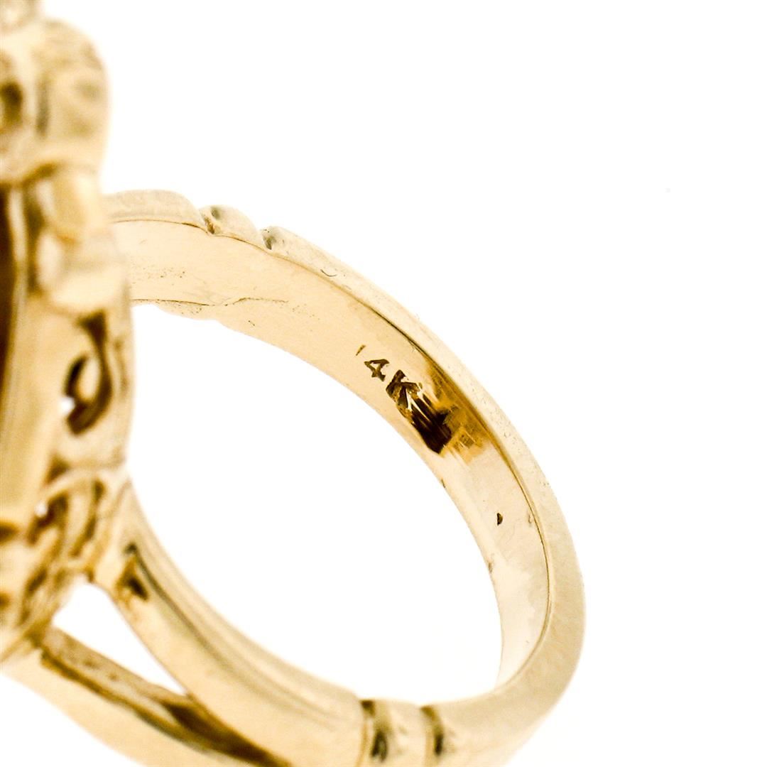 A vintage solid 14k yellow gold ring, featuring 1 oval cut natural citrine (21.0x15.4x6.89mm - 12.00ct). The ring is size 5.5, weighs a total of 14.82 grams, and measures 25.35mm wide.
